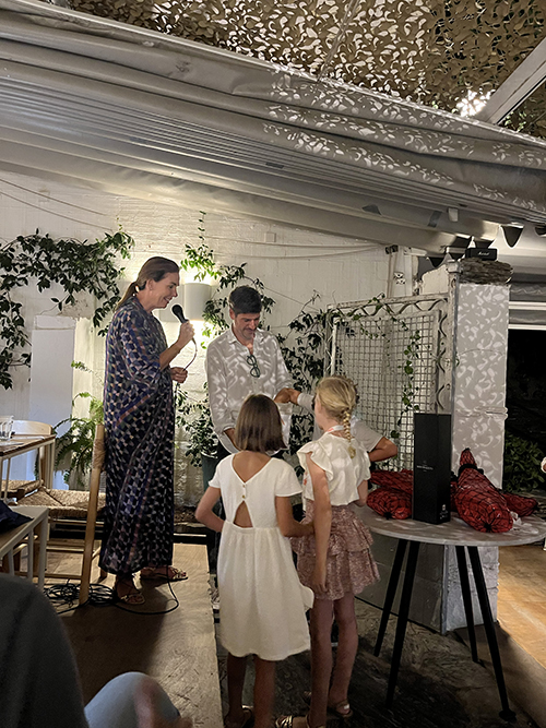 También se vendieron abanicos diseñados por Álvaro Picardo que causaron sensación entre el público y se obsequiaron con 4 bañadores de la firma Arrels de Javier Llaudet, a Agustín Escalza, Alberto Soler, Jordi Vendrell y Valero Soler (propietarios del restaurante) por su contribución a la celebración de este evento.